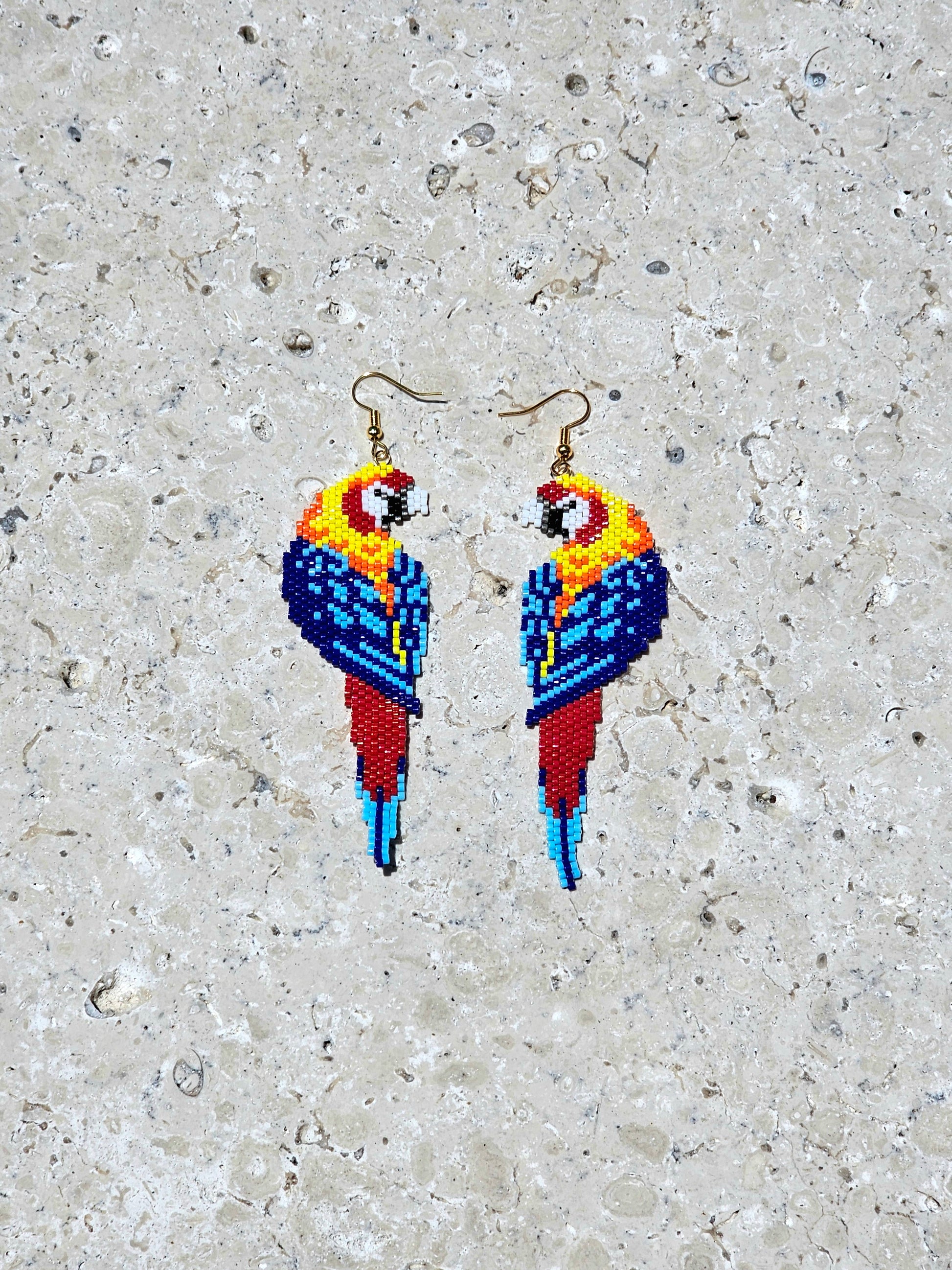 A vibrant tribute to the macaw, these hand-beaded earrings burst with tropical energy and bold color — perfect for those who love to stand out with nature-inspired charm.